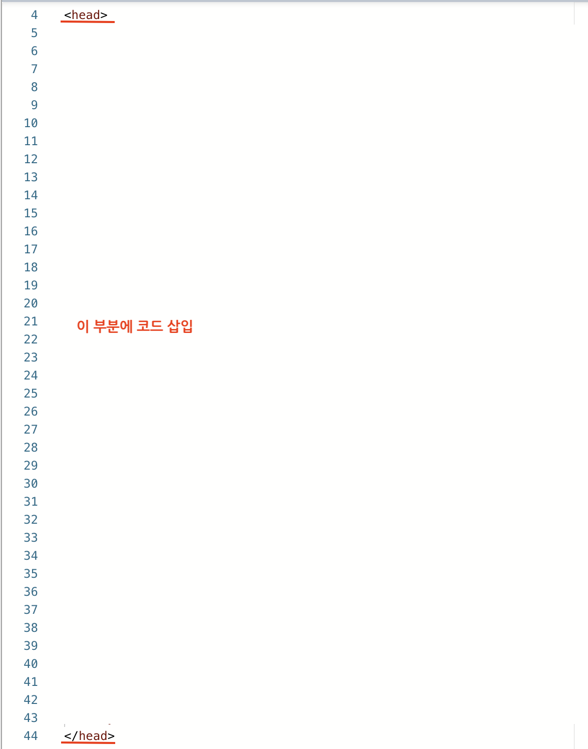6️⃣ 티스토리 html 편집에서 <head></head> 사이에 복사한 코드를 붙여넣는다.