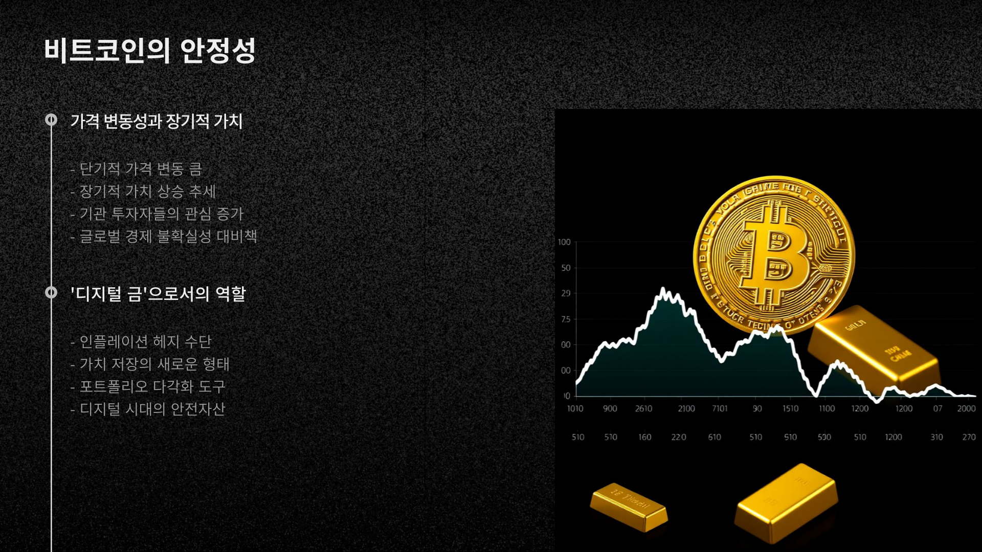 사실 비트코인은 가격 변동성이 크지만, 장기적으로는 가치 저장 수단으로 자리 잡고 있다. 특히 경제 불확실성이 커질 때 금과 함께 **'디지털 금'**으로 주목받는다. 하지만 변동성을 감안해 투자 시 신중함이 필요하다. 그 속성이 금과 거의 유사하기 때문이다. 한정된 공급량을 기반으로 거래되기 때문이다.
