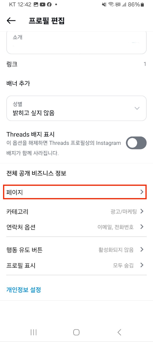 - 연결 방법: 내 계정 → 프로필 편집 → '페이지' 클릭 → 페이스북 페이지 연결