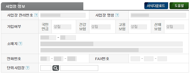 5) 기본 사업장 정보를 입력한다. 사업장관리번호는 사업자등록증에 발급된 사업자번호에 +0 이 하나 추가된다.