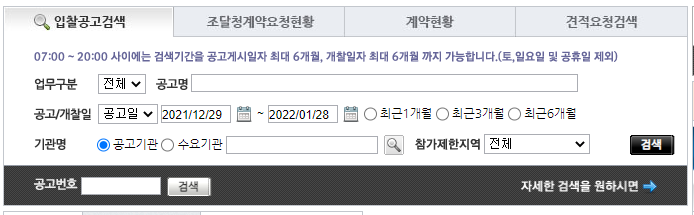 이렇게 나라장터 사이트에 들어가서 "공고명"에 검색을 해보는 것이다.