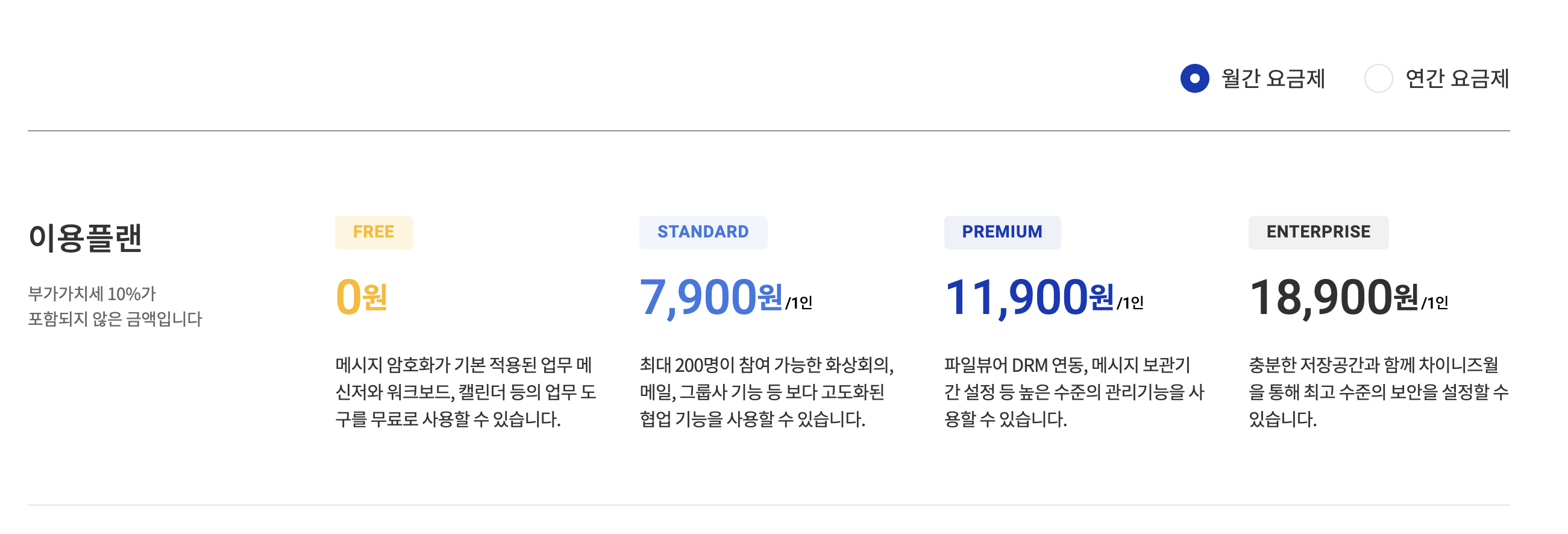 • 프리미엄 플랜: 사용자당 9,900( 단위 결제 기준). * 아래 이미지는 월단위결제 기준